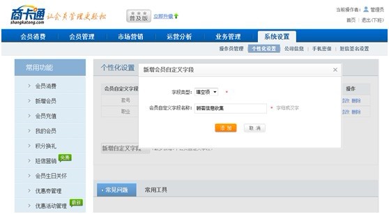 (1) 会员需求信息的收集(信息化管理)。会员制的不断创新是在考验一个企业究竟对他的顾客有多了解。所谓“创新”必须从顾客的需求出发,决不能单靠头脑去判断会员需要什么,推广与维持会员制,最关键的是真正从会员需求出发,多为会员着想,维护会员的利益,注重会员深层次的需要和欲望。只有清楚顾客需要什么,我们才能够正确的为顾客推出活动。顾客的需求就成为非常关键的因素。先可以通过商卡通对会员信息的收集:
