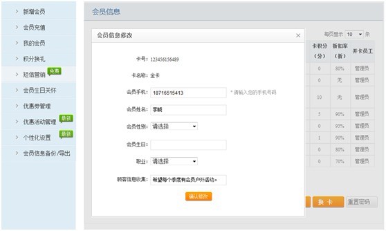 b. 会员管理-我的会员-会员修改,通过电话记录下这个会员的需要信息并记录下来。