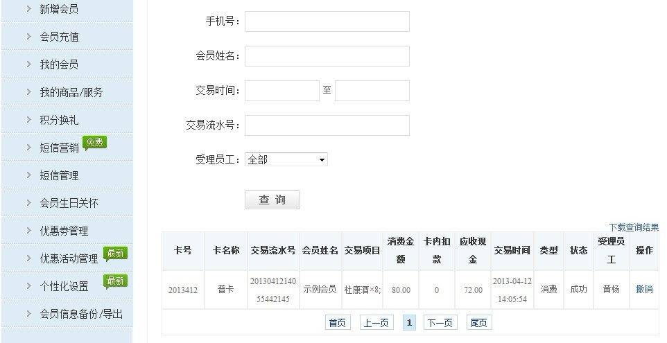 交易信息的查询。会员消费-消费查询/撤销功能。