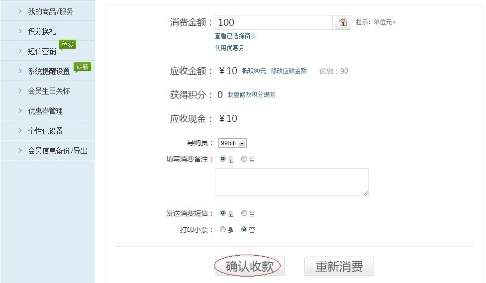 显示会员消费成功,完成积分抵现。