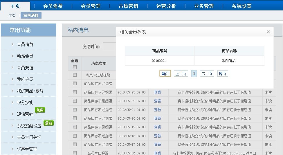 2. 短信提醒方式会通过短信直接发送到注册手机号上。站内消息提醒通过“主页”-“站内消息”功能进行查看,都是提醒当天早上7点发送短信跟消息。
