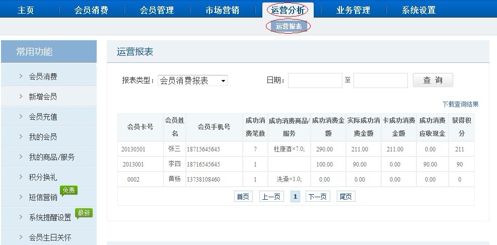商卡通会员管理软件【运营分析】-【运营报表】-【会员消费报表】,更清晰的了解会员的消费能力跟消费商品习惯,充分了解会员的需求。
