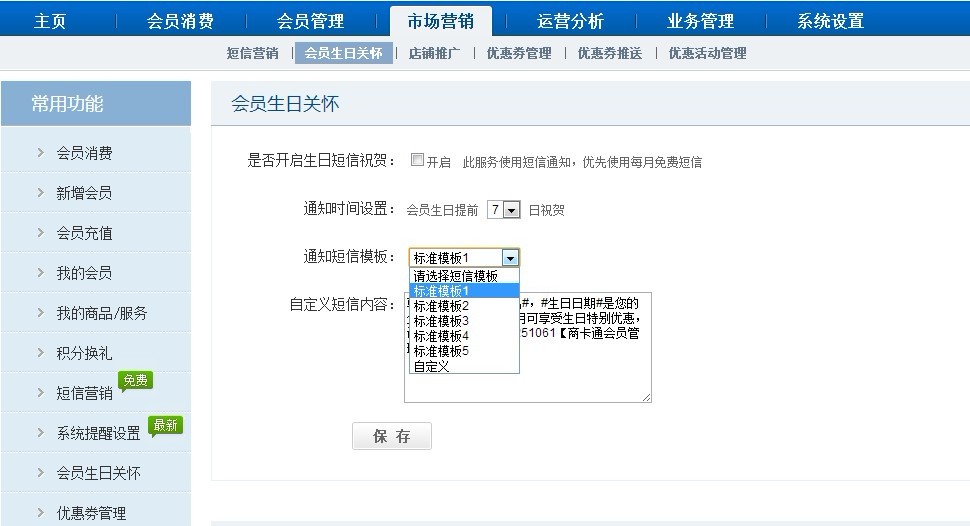 商卡通会员管理软件【市场营销】-【会员生日关怀】功能,给新会员、老会员送去温馨的祝福。切实拉近与会员的关系。