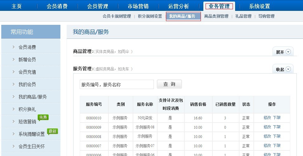 【业务管理】-【我的商品/服务】,【我的服务】的使用范围以及如何上架我的服务。在【业务管理】-【我的商品/服务】功能点击“上架新服务”完成上架服务操作。