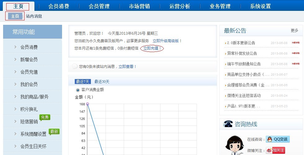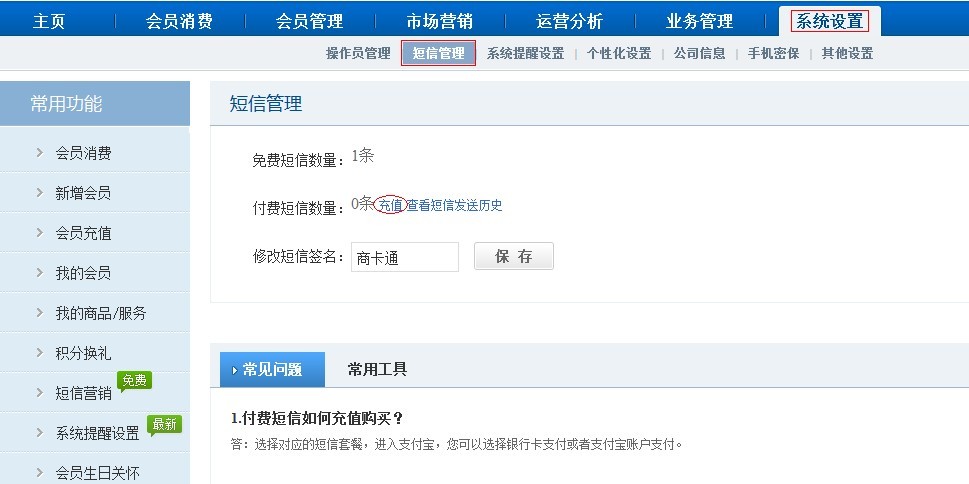 付款短信不像免费短信,商卡通免费短信会在每月1号赠送,有1个月的使用期限。而付费短信条数无时间限制,付费短信充值也是即充即用。 付费短信充值方法:
